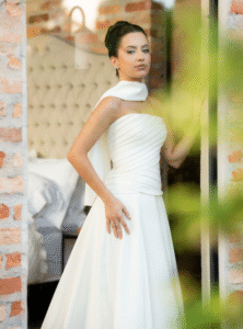 Mais do que peças de alta costura, nossos vestidos são convites à introspecção. Cada modelo é desenvolvido pensando em mulheres reais, que desejam viver seu momento com autenticidade e significado. Aqui, a noiva não é coadjuvante de um roteiro pré-definido — ela é autora da própria narrativa, protagonista de uma história escrita com rendas, tule e emoção.
